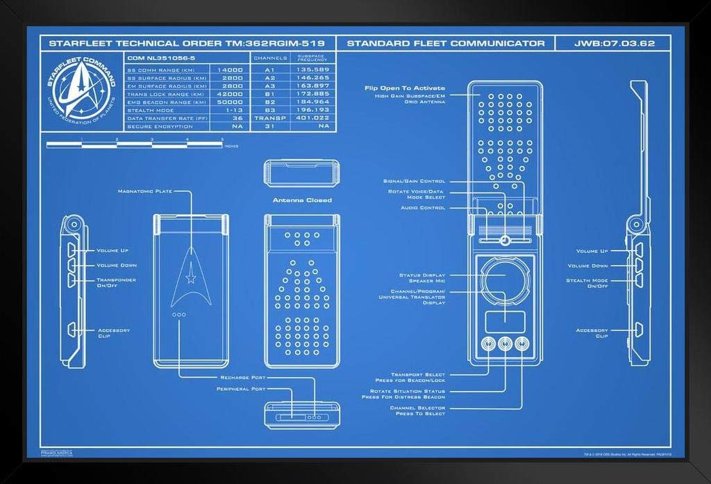 Star Trek Discovery Communicator Blueprint 2 Matted Framed Poster 20x26 Inch Wall Art Posters Prints